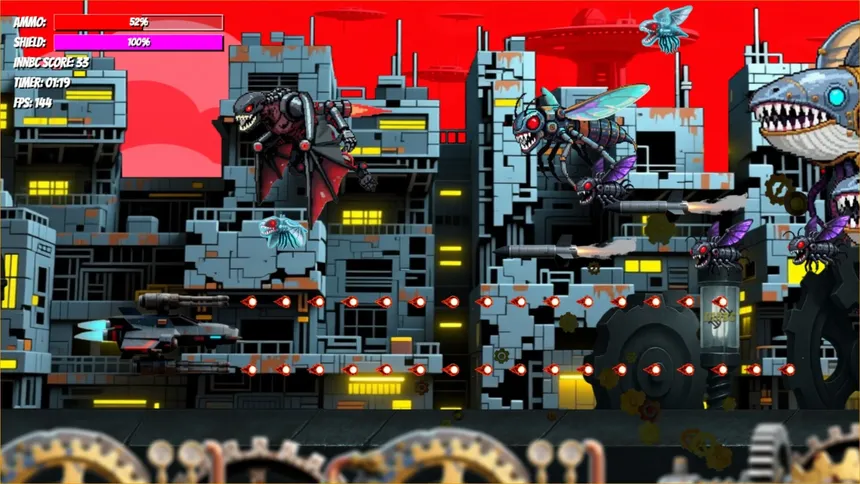 A free-to-play 90s-style bullet-hell shooter with high-res graphics, unlocked 60+ FPS, single-player campaign, and online co-op multiplayer!