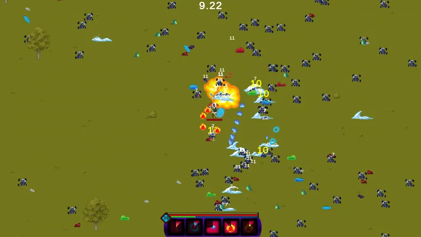 Magus Day is a top-down arena shooter where you play a mage who upgrades her spells every level to fight the incoming monsters.