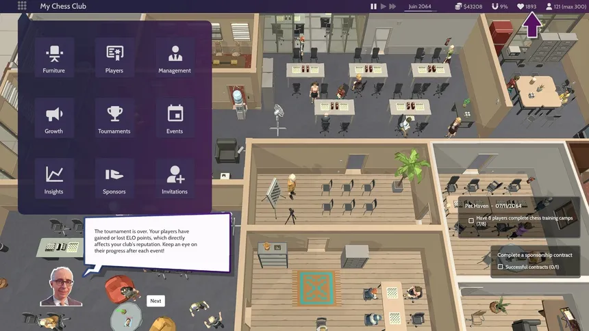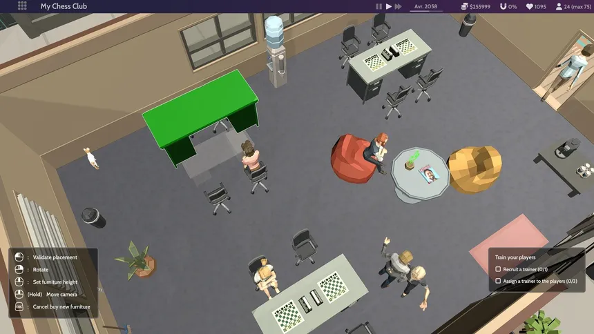 Создавайте и управляйте собственным шахматным клубом с нуля. Набирайте любителей, тренируйте их, превращая в чемпионов, расширяйте помещение и достигайте всемирной славы.
