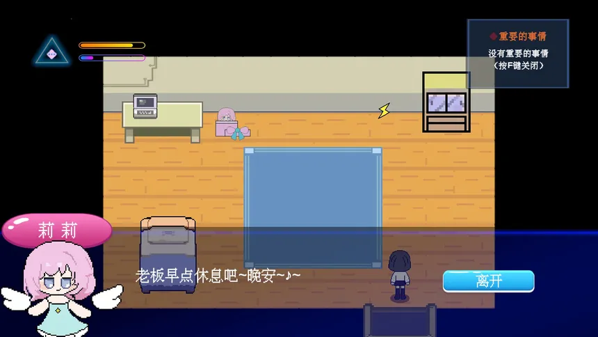 "City of Stars" is a 2D action role-playing game.You take on the role of a "Human" and journey to "City of Stars" to explore the future of humanity and AI.You must manage your time to enhance attributes, earn gold, and advance relationships with humans and AI beings..
