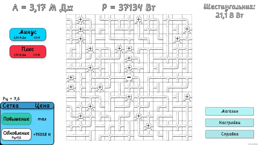 Idle-головоломка в стиле электрических цепей. Меняйте положение проводов, чтобы увеличить доход