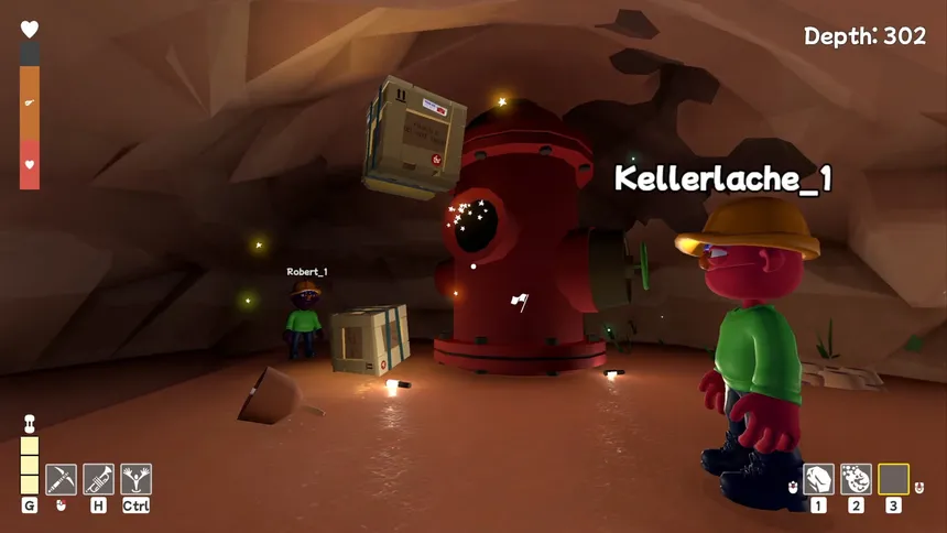 A co-op game where you fall, dig and explode your way down a dangerous cave system to find your lost dog. Catch your friends and watch your step on this journey full of traps, hazards and the most deadly of all: Gravity. Will you jump into the unknown to rescue your dog?