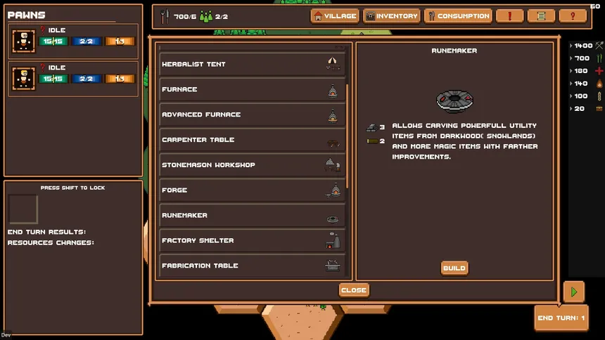 Pawn Survival is a turn-based survival strategy game where you command a small community of pawns struggling to survive, send them to gather resources, explore unknown lands, grow your village, and forge powerful equipment to withstand whatever this brutal world throws at you.