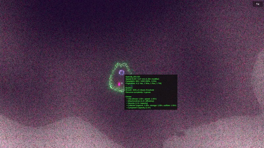 Grow fluorescent cells that create mesmerizing emergent chaos. Simple mechanics hide deep complexity as cells evolve survival strategies through synergistic interactions. Catalogue successful lines and culture them to develop your own unique biology.