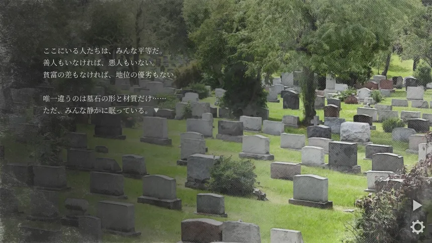 死をテーマにした、選択肢のない哲学的ビジュアルノベルゲーム。 墓守との対話を通して、生と死について思索する短編作品です。