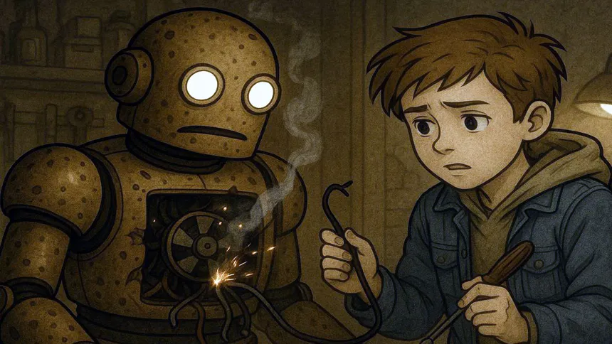 It`s a story about a boy and a robot traveling through a world where hatred and violence threaten life, where humans are deadlier than machines, and machines are deadlier than humanity. The story unfolds in a future that feels like the past! The game contains fictional mechanical puzzles.