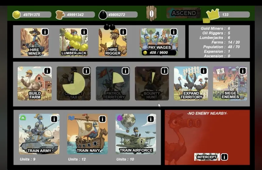 Build your empire, manage resources, and ascend to greatness in Emu Empire—a quirky strategy game where every decision shapes your legacy!