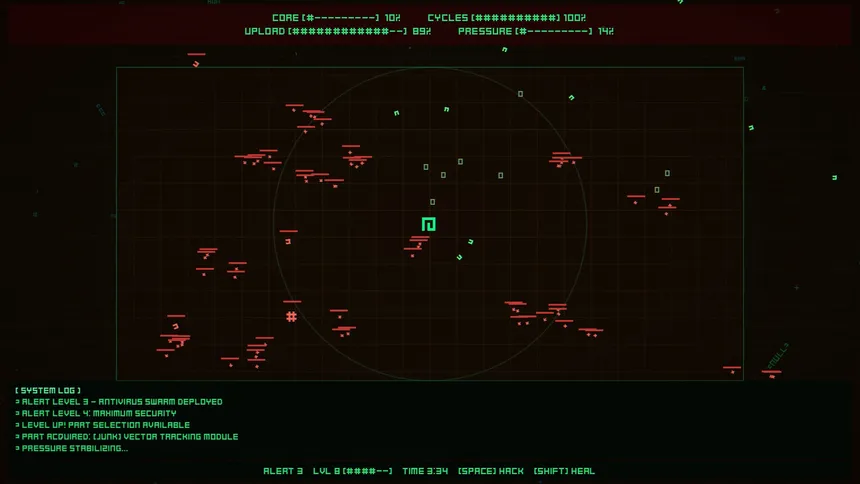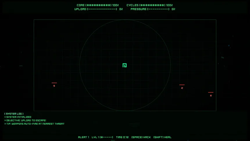 Mow down security programs and hack your way to freedom. UPLOAD is a roguelite where you can't move - you're an AI bolted to a server rack. Your weapons auto-fire while you balance processing cycles between defense and escape.