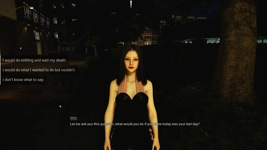 Heartlinesis a choice-driven narrative FPS game where your decisions determine who lives, who dies. You and the all people inside of street can't leave you see an Angel in your dream and he says you need to kill the one who possessed by Satan. You have 10 day, before time runs out make your choices.