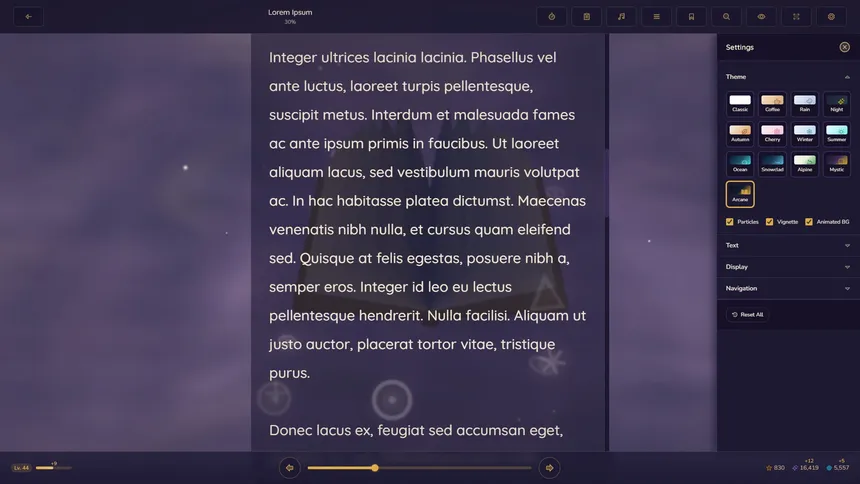 StoryMode is a reading tool completely built around idle/incremental gameplay and progression. Add manga and books, earn experience, levels, and rewards as you read. Complete quests, discover companions, and personalize your reading experience with customizable themes and animated backgrounds.