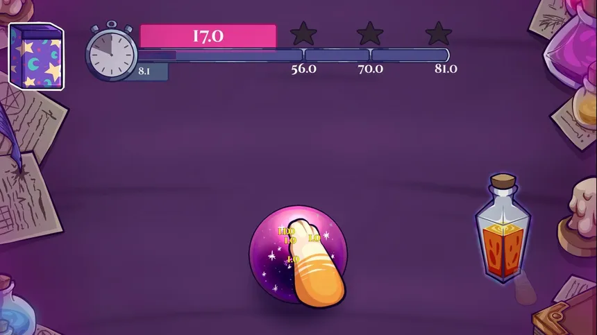 Кликайте, чтобы катить хрустальный шар, избегать препятствий и сражаться с боссами, собирая колоду, меняющую стратегию каждый забег. Помогите любопытному рыжему коту Мьюлину устроить магический хаос.