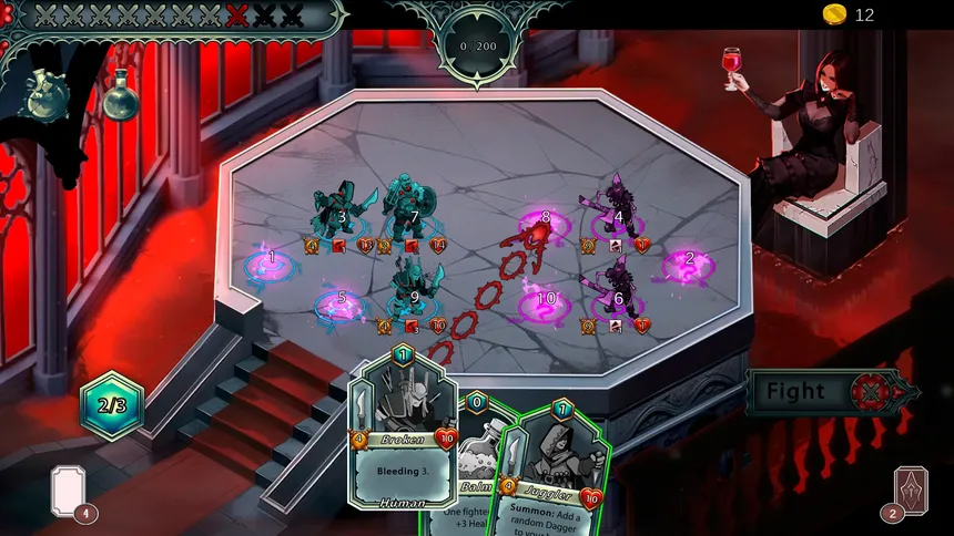 Карточный рогалик, в котором ваши бойцы обречены на смерть. Их кровь - ценный ресурс, в то время как их жизни ничего не стоят. Участвуйте в смертельных битвах, собирайте кровавую дань и утоляйте жажду вашей Королевы.