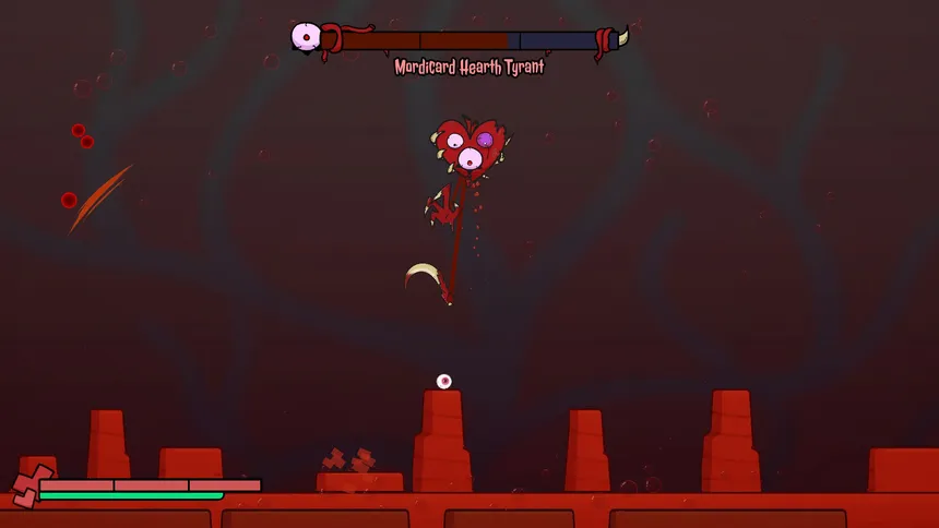 A silly-but-violent 2D boss rush where a laser-shooting eyeball battles deranged cartoon monsters in bullet-hell chaos. Time your special attacks, recover mid-fight, and survive gory slapstick deaths again and again.