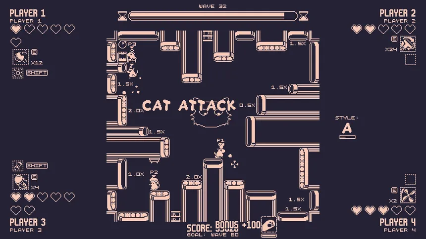 Sweep Squad is a 1-4 player arcade sweep-em-up where you and your ambiguous rodent friends team up to sweep away the bad guys and hit your quotas. Crank up the earnings with overtime and use various sub-weapons at your disposal to sweep away the competition.