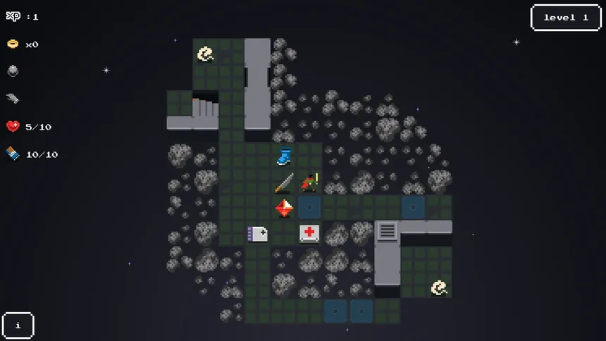 A sci-fi roguelike where you descend 17 procedurally generated levels into a hollow asteroid. Battle aliens, collect futuristic weapons and nanotech, manage hunger and permadeath. Fast, minimal, turn-based combat inspired by the original Rogue.