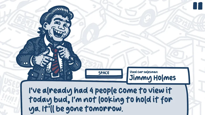 Hassle the unsuspecting residents of Chislington in order to barter your way up from a paperclip to a car, so you can go visit your family for the holidays.