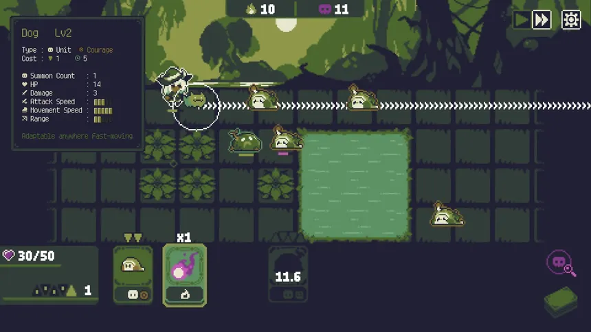 "Nightcap Witch" is a rogue-lite strategy game where you battle using a limited set of units. Build a deck of 8 cards and defend the spring from the onslaught of nightmare legions. Can you drive away the nightmares and reclaim your peaceful sleep?