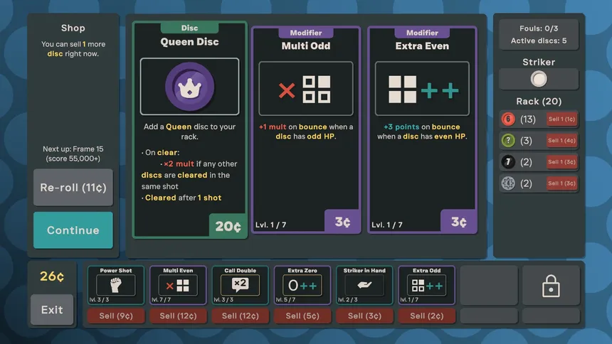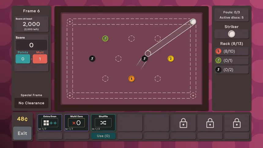 Flick Party is a roguelike deckbuilder based on the mechanics of carrom and French billiards. Flick your way around the table and chain creative combination shots to complete each frame. Build your rack of discs and modify the rules of the game as you go along.