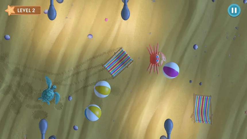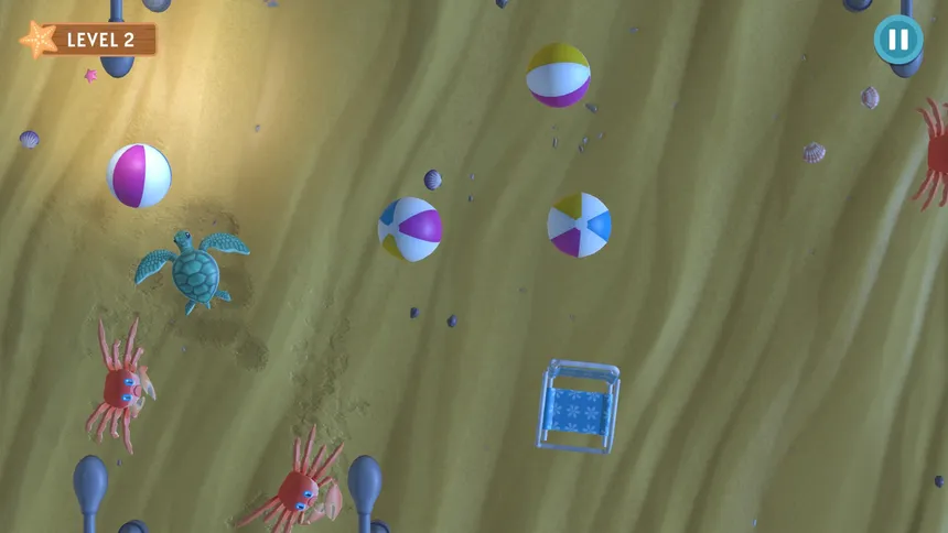 A vibrant top-down game about helping baby sea turtles reach the ocean by clearing a safe path forward. Turn off bright lights, scare away aggressive crabs, and clear obstacles to guide hatchlings to safety!