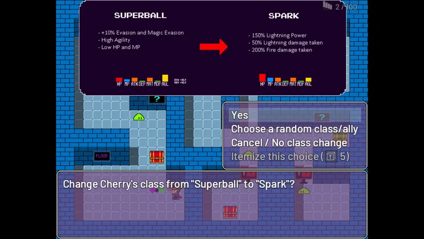 Explore down 100 floors of a mysterious, ancient cave, fighting enemies turn based RPG style, but resetting all levels and items and starting all over if you fail roguelike style. Can you beat the cave's challenge?