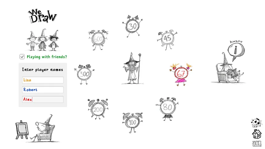 We Draw is a fun, family-friendly exquisite corpse-style drawing game! Create hilarious creatures by sketching a head, body, and legs—alone or by passing the device. Race the clock, reveal the results, and laugh at the unexpected combinations!