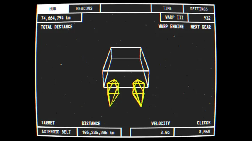 Distance is a minimalist idle game where your keystrokes drive a lone starship forward through an endless stretch of space.