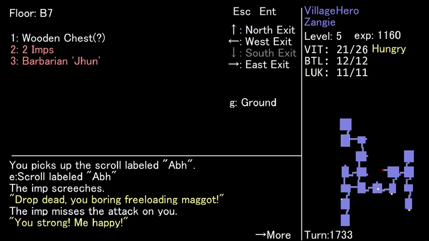 No graphics, No tiles. Just text-RPG adventure! Explore a shifting labyrinth, regain the Ring of Life from the wizard Shingor. Classic roguelike-style messages guide your journey, with narrative scenes evoking the spirit of MUDs and gamebooks. Death is permanent. Every run brings new discoveries.