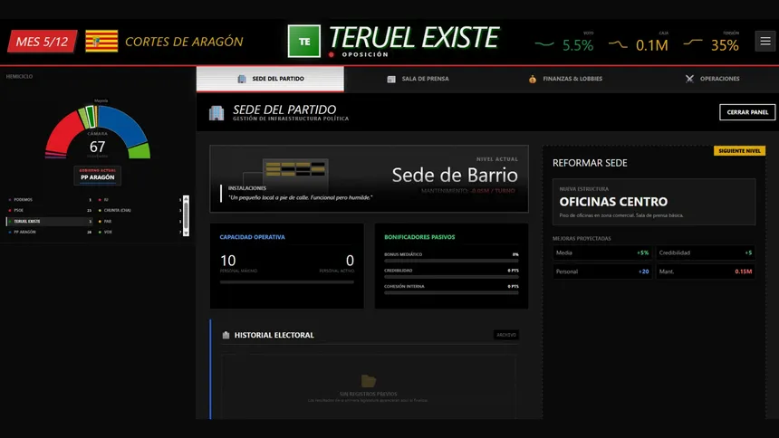 Take control of a political party and compete for power in this turn-based simulation. Manage strategy, face media pressure, debates and critical decisions, negotiate alliances, and lead your party to electoral victory.