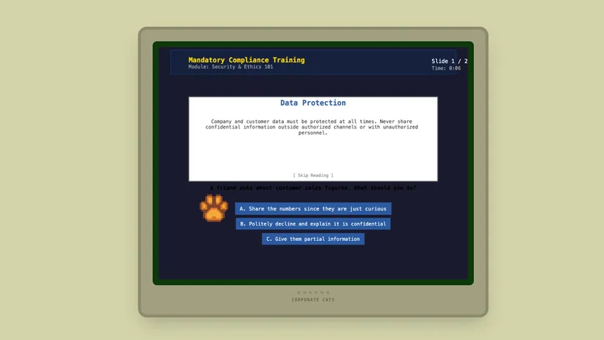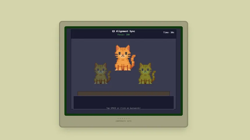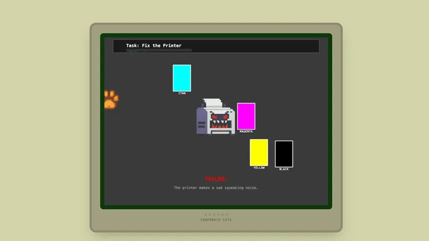 Survive the 9-to-5 as a corporate cat! Sort emails, master rhythm-based meetings, fix printer jams, and make strategic decisions in this humorous 8-bit office simulator. Complete mini-games to earn promotions!