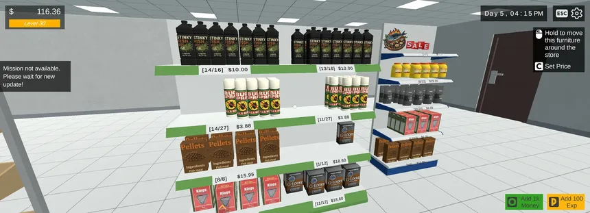 Run your own fishing tackle shop in this first-person simulation game. Order and stock products, manage prices, serve customers, and expand your store over time through simple shop management and steady progression.