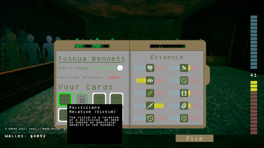 “Your Price, Your Honor.” is a game where you control the choices of a judge who is getting close to retirement. You must manage the public’s tolerance for injustice… and your own wallet.