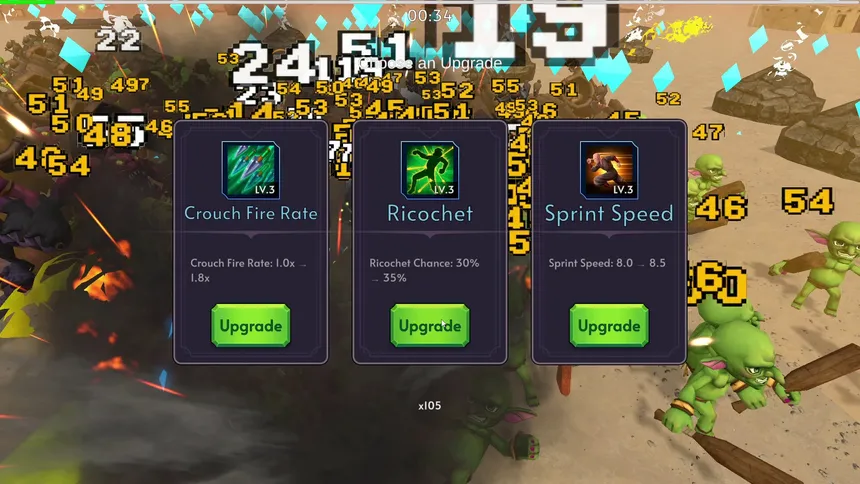 A third-person bullet heaven roguelike where you play a gunslinging cowboy, selecting powerful upgrades and mowing down thousands of goblins and monstrous enemies in fast-paced desert battles.