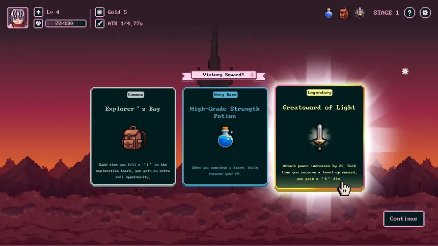 Throw the dice to defeat monsters! Roll the dice and place them strategically. The hero’s attacks, skills, health—every stat depends entirely on your choices.