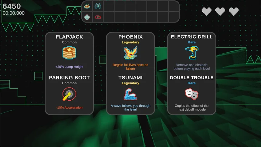 Praxium is a 2D precision platformer that blends fast-paced movement with strategic deckbuilding. Gain movement abilities, transform scoring rules, and even modify levels themselves to achieve the highest score possible while running, jumping, and sliding across 100 levels of pure platforming fun!