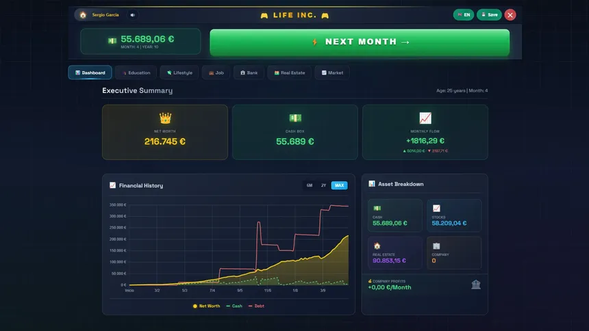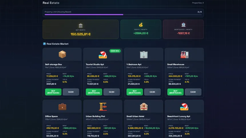 💼 Начни без денег. Построй империю. Поднимайся по карьерной лестнице, инвестируй в акции и недвижимость или создай свой бизнес с нуля. Каждое финансовое решение определяет твою судьбу. Уйдёшь на пенсию миллионером — или утонешь в долгах?