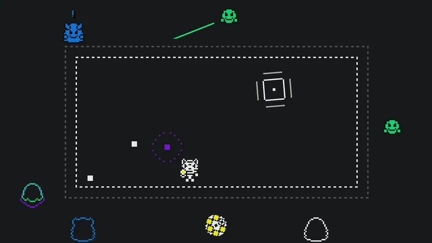 Whisker Cowboy is a top-down arena shooter. Load your revolver with superpowers, predict enemy movement, aim carefully, shoot ghosts, and survive wave after wave.