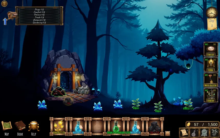 Станьте лесным алхимиком в странствующем фургоне! Выращивайте травы, собирайте редкие ингредиенты, создавайте зелья на алхимических станках, торгуйте с лесными жителями и исследуйте новые локации. От простых экстрактов до могущественных эликсиров