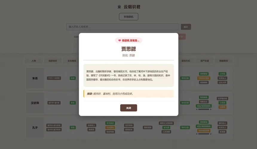 A deduction game about historical figures. Enter characters to compare attributes and follow color‑coded hints to narrow down the answer. Analyze, associate, and identify the target, or enjoy co‑op, speed, and versus modes for competitive deduction fun.