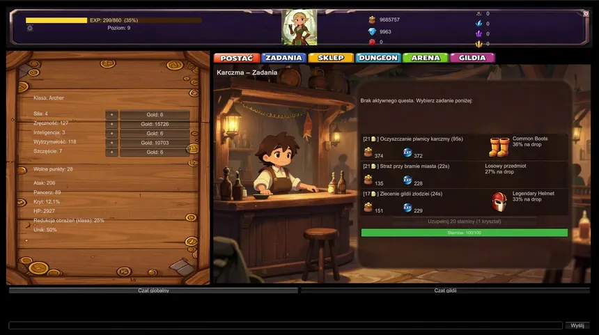 Keg & Quest is a free-to-play idle RPG with online multiplayer. Build your hero, join a guild, compete in PvP, and take part in world boss events where strategy and progression matter more than reflexes.