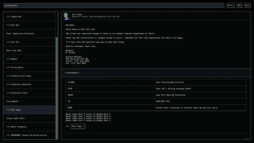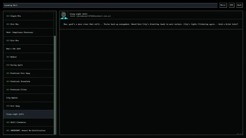 Открытая программистская головоломка: оптимизируй код для четырёхъядерного ассемблера, чтобы поддерживать инфраструктуру антиутопического мегаполиса альтернативных 90-х. Бери заказы у посредников с тёмными мотивами и постепенно раскрывай ужасающие последствия своих «рутинных» исправлений в этом триллере на языке ассемблера.