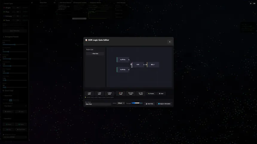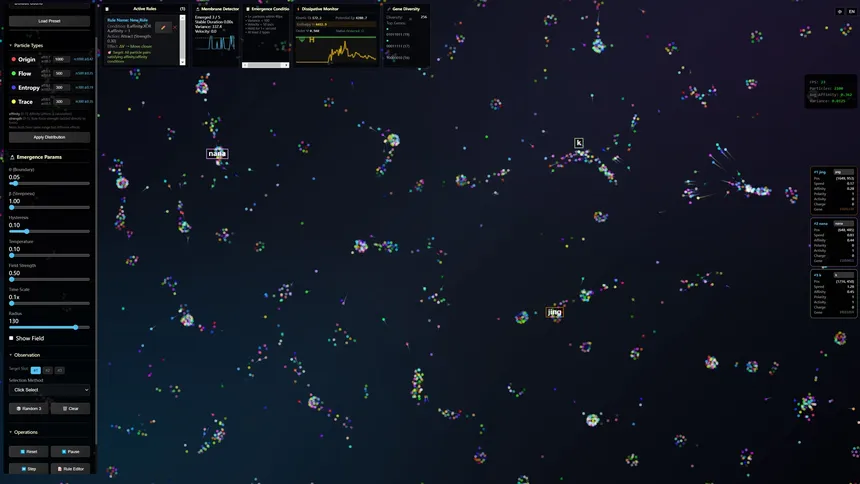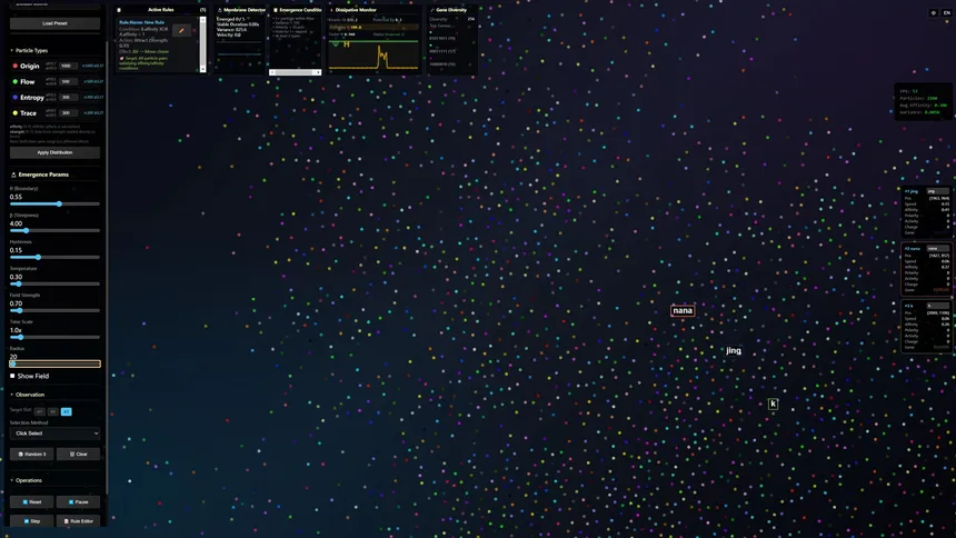 Jingjie: Reject grinding. Embrace chaos. Victory isn't won by memorizing formulas, but by scripting robust laws to tame the probability cloud. Here, you write the rules of nature. From simple logic, complex life emerges. Observe. Experiment. Evolve.