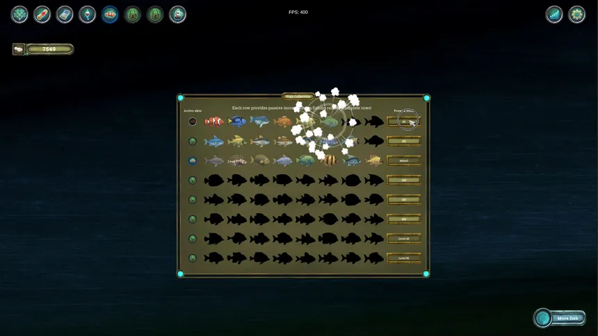 More Fish — это простая игра в жанре incremental idle clicker. Ловите рыбу, ощущайте события, находите жемчуг и ищите потерянные предметы моря, открывайте новые скины рыб, карты талантов и тратьте свои монеты и жемчуг на огромное дерево навыков и новые поплавки!