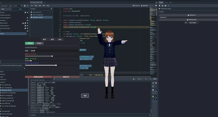 ## ✨ 核心特性 ### 🗣️ AI 智能对话 - 智能情绪识别,自动分析回复中的情感倾向 - 对话历史持久化,每个角色独立记忆 ### 😊 表情自动联动 ### 👥 多角色支持 - 内置 **10 个精美 VRM 角色**: - 一键切换角色,自动加载对应对话历史 ### 🎨 姿态编辑系统 - **19 个可编辑骨骼点**:头部、四肢、躯干全方位调整 - **实时预览**:拖动滑块立即看到效果