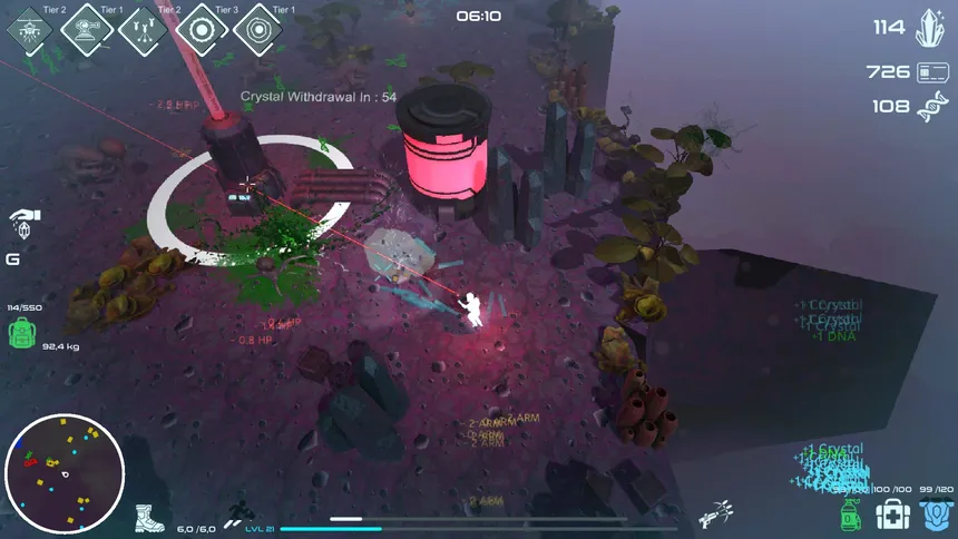 Круши, добывай и продавай ценные кристаллы в этом динамичном инкрементальном roguelite про добычу и экстракцию. Зарабатывай валюту для постоянной прогрессии и мощных билдов в забегах. Сражайся с ордами пришельцев, продавливайся в зоны и эвакуируйся в конце каждого забега — или потеряй всё.