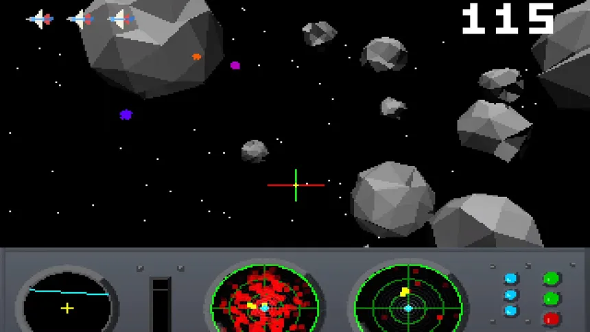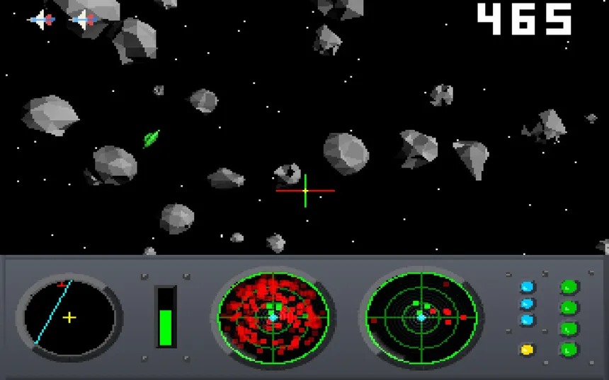 Blast through 3D asteroid fields, crack open rocks for treasure, and fend off alien raiders who steal your loot or attack on sight. Fast‑paced first‑person retro arcade action meets pixel‑powered chaos in deep space.