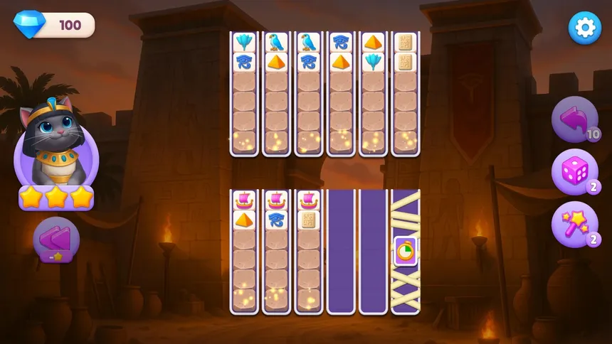 Sort Pawzzle — это уютная игра про сортировку тайлов с грациозной чёрной кошкой! Пройди 230 расслабляющих уровней, открой красоту Древнего Египта и восстанови царство фараона шаг за шагом.