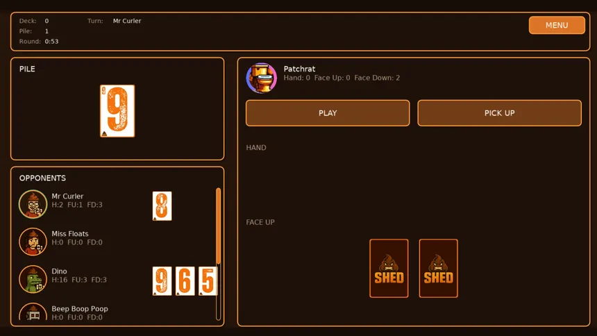 Flush your friends. Burn the deck. SHED everything. SHED is a competitive card-shedding game where your goal is simple: get rid of everything before your friends do. Perfect for game nights, parties, or friendly rivalry. Remember, the last player out earns the title nobody wants.