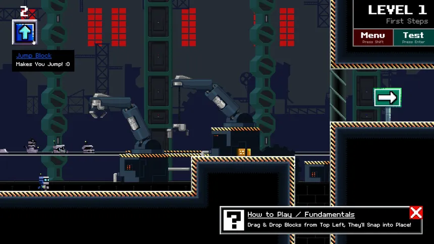 Drag & Drop Various Action Blocks to Guide The Robot to The End of The Level!