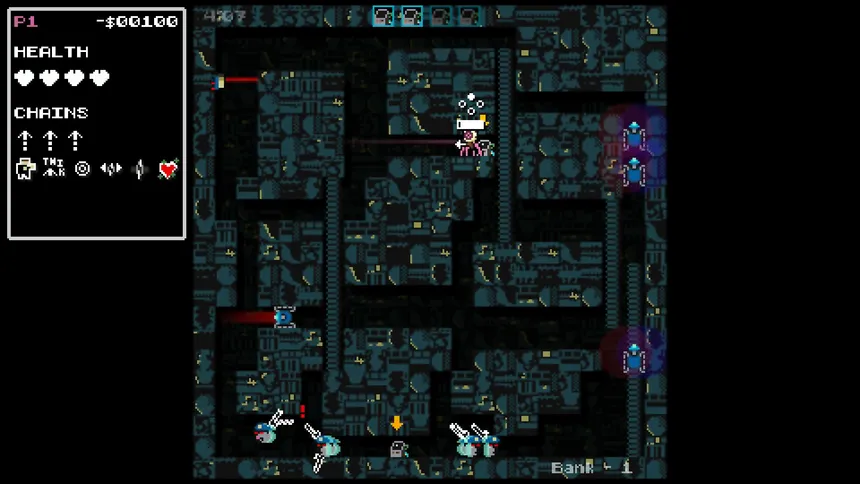 Gabe’s Action Arcade RogueLike is a single screen action platformer with roguelike elements. Use your chain gun to fight monsters and maneuver through handcrafted levels. Jump, climb, buy upgrades, get good health insurance, and max out your 401k.