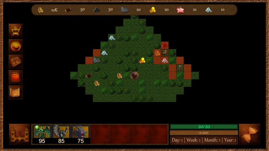 Age of Failon is a turn-based fantasy strategy game where players control heroes exploring a world map, gathering resources, building up castle with unique creature dwellings, recruiting armies, casting spells, and battling enemy heroes and monsters.